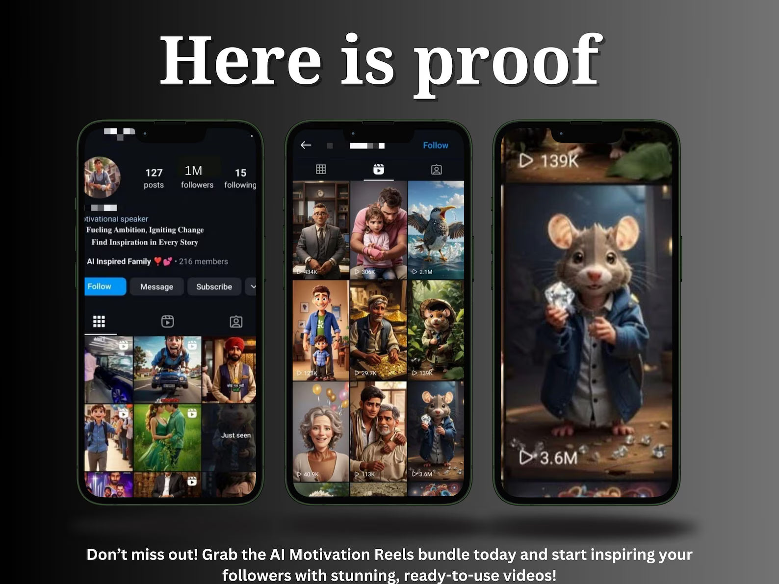 Each reel is crafted for maximum watch time and shares, tested across lifestyle, business, motivation, and entertainment niches.